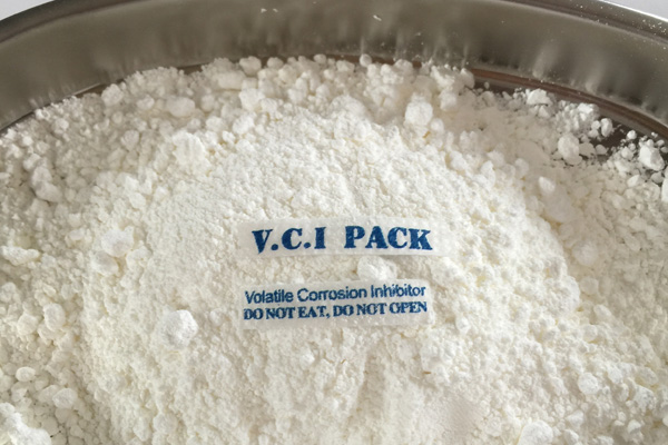 氣相防銹粉末多種特制的氣相緩蝕劑原料按一定配比均勻混合加工而成,具有水溶性,是一種新型的氣化性防銹材料。在密閉空間內(nèi),VCI經(jīng)氣化揮發(fā)到金屬的每個角落,吸附在金屬表面形成致密保護(hù)膜層從而起到防銹的作用